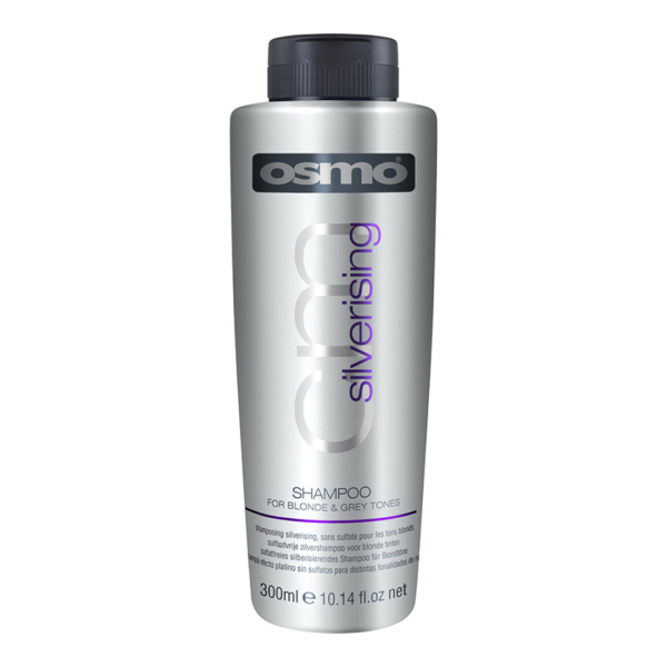 Шампунь для освітленого та сивого волосся Silverising від Osmo, 300 мл — професійний засіб для делікатного очищення та нейтралізації небажаної жовтизни. Формула з фіолетовими (сріблястими) пігментами допомагає підтримувати холодний відтінок блонда та сивого волосся, запобігаючи появі жовтих і мідних тонів. Шампунь м’яко очищає волосся, не вимиваючи колір і не пошкоджуючи структуру. Засіб також захищає волосся від впливу навколишнього середовища та сприяє збереженню насиченості відтінку, надаючи волоссю більш глибокий і чистий колір.