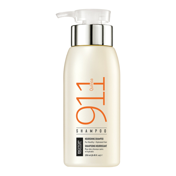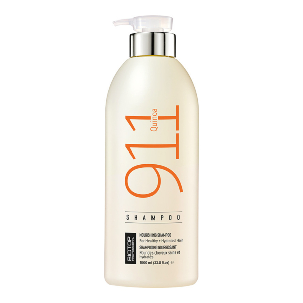 Шампунь для волосся з протеїнами кіноа BIOTOP 911 — професійний очищувальний засіб на основі протеїнів кіноа, створений для зволоження, живлення та відновлення сухого, пошкодженого або тьмяного волосся. Формула з природними білками та поживними речовинами м’яко очищає, насичує волосся незамінними амінокислотами, жирними кислотами й вітамінами, повертаючи гладкість, еластичність і природний блиск.