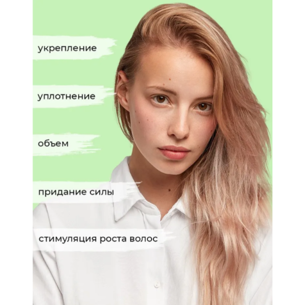 - Зміцнює волосся від коренів, стимулює їх ріст і надає об’єм
