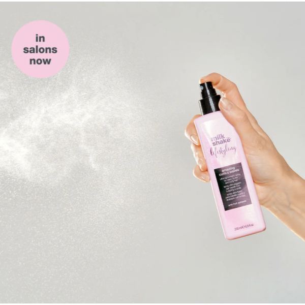 Milk Shake Lifestyling Amazing Curl — спрей для кучерявого та хвилястого волосся, який підкреслює локони, надає об'єм і захищає від вологості. Утворює невидиму плівку за допомогою полімерів нового покоління, захищає від агресивних факторів та максимізує блиск за рахунок органічних екстрактів яблука, лимона та чорниці.