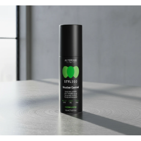 Спрей Weather Control із професійної лінії Stylego Protect від Alter Ego Italy — це легкий, але ефективний засіб для захисту волосся від вологості, пухнастості та електризації. Формула створює найтонший анти-вологісний бар’єр, завдяки чому зачіска довше зберігає гладкість, форму та охайний вигляд. Волосся залишається м’яким, еластичним, без липкості та тяжкості. Підходить для всіх типів волосся.