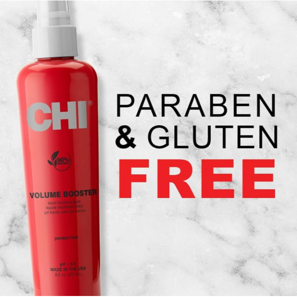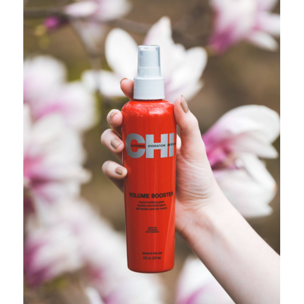CHI Volume Booster 237 мл — це професійний прикореневий спрей, який допомагає створити об’єм біля коренів, щільність і виразну укладку без ефекту склеювання. Засіб піднімає волосся від коренів, надає йому візуальну густоту, гладкість і блиск, а також забезпечує еластичну фіксацію, зберігаючи рухливість зачіски. Формула підходить для щоденного використання і не обтяжує волосся, що робить спрей ідеальним для тонкого та позбавленого об’єму волосся.