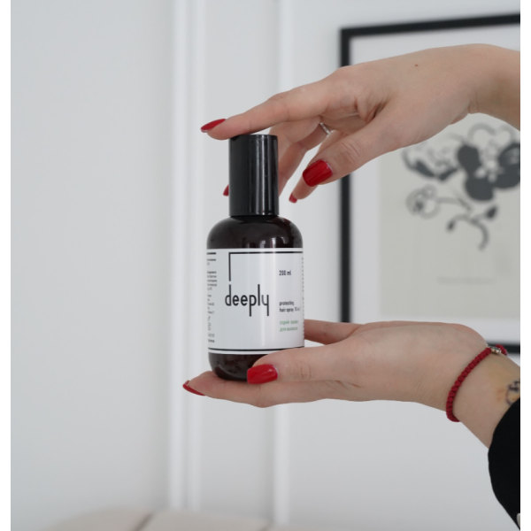 Багатофункціональний спрей-захист 10 в 1 Deeply Protecting Hair Spray — універсальний захист і догляд для волосся в одному флаконі. Захищає від високих температур до 230°C, УФ-променів, ламкості та електризації, надає блиск, розгладжує, полегшує розчісування та фіксує укладку. Ідеальний засіб для щоденного захисту та досконалості волосся.