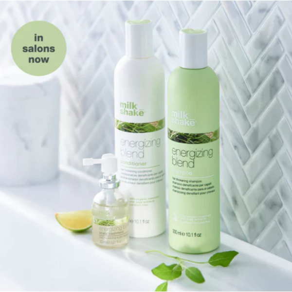 Energizing Blend Scalp Treatment — це інтенсивний засіб від Milk Shake для стимуляції мікроциркуляції шкіри голови та зміцнення волосяних фолікулів.