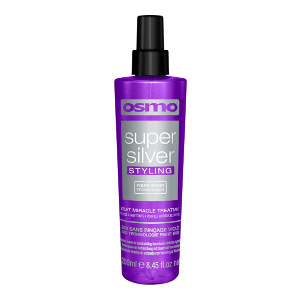 Засіб для відновлення освітленого та сивого волосся Super Silver Osmo — професійний незмивний догляд, розроблений спеціально для світлого, мелірованого та сивого волосся. Засіб допомагає нейтралізувати небажану жовтизну та підтримує гарний холодний відтінок блонда. Формула містить фіолетові пігменти, які ефективно усувають теплі жовті відтінки, надаючи волоссю більш чистий платиновий або сріблястий тон. Завдяки технології Fiber Bond засіб зміцнює структуру волосся, зменшує ламкість і сприяє відновленню пошкоджених ділянок. Активні компоненти, включаючи гідролізований соєвий протеїн та рослинні олії, живлять волосся, утримують вологу та роблять його м’яким і еластичним. Регулярне використання засобу допомагає зберегти холодний відтінок блонда, покращити стан волосся та зробити його більш гладким, блискучим і доглянутим.