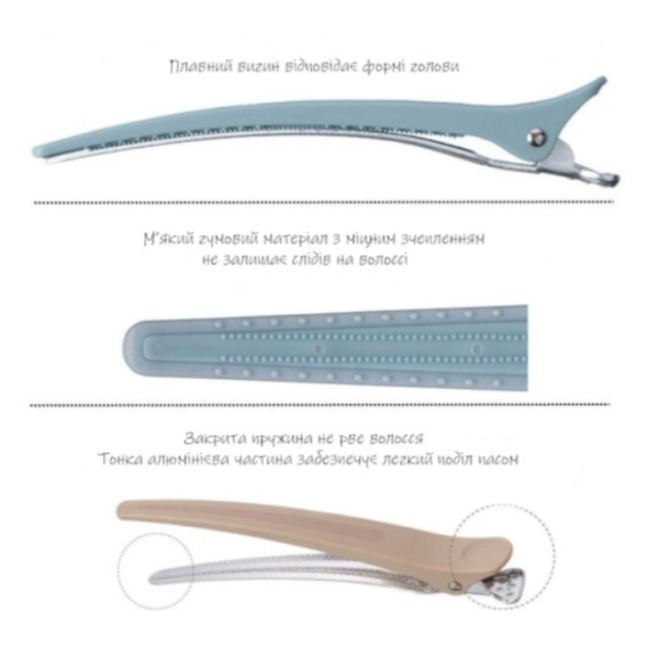 - для точного поділу пасм при стрижці, безпеки при фарбуванні та укладання, надійної фіксації волосся без пошкоджень, комфортної роботи завдяки легкому носію та ергономіці, використання в салоні та будинку