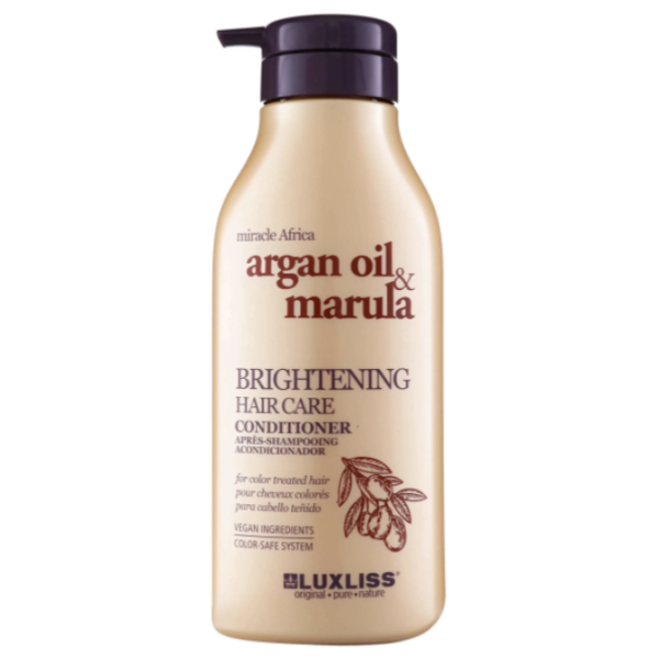 Кондиціонер з маслом марули luxliss brightening hair care conditioner — професійний зволожуючий кондиціонер для блиску волосся, збагачений маслом марули та аргановою олією, який глибоко зволожує, живить і зміцнює волосся, надає їм сяйво, м’якість та шовковистість, робить пасма більш слухняними, гладкими та доглянутими після кожного застосування.